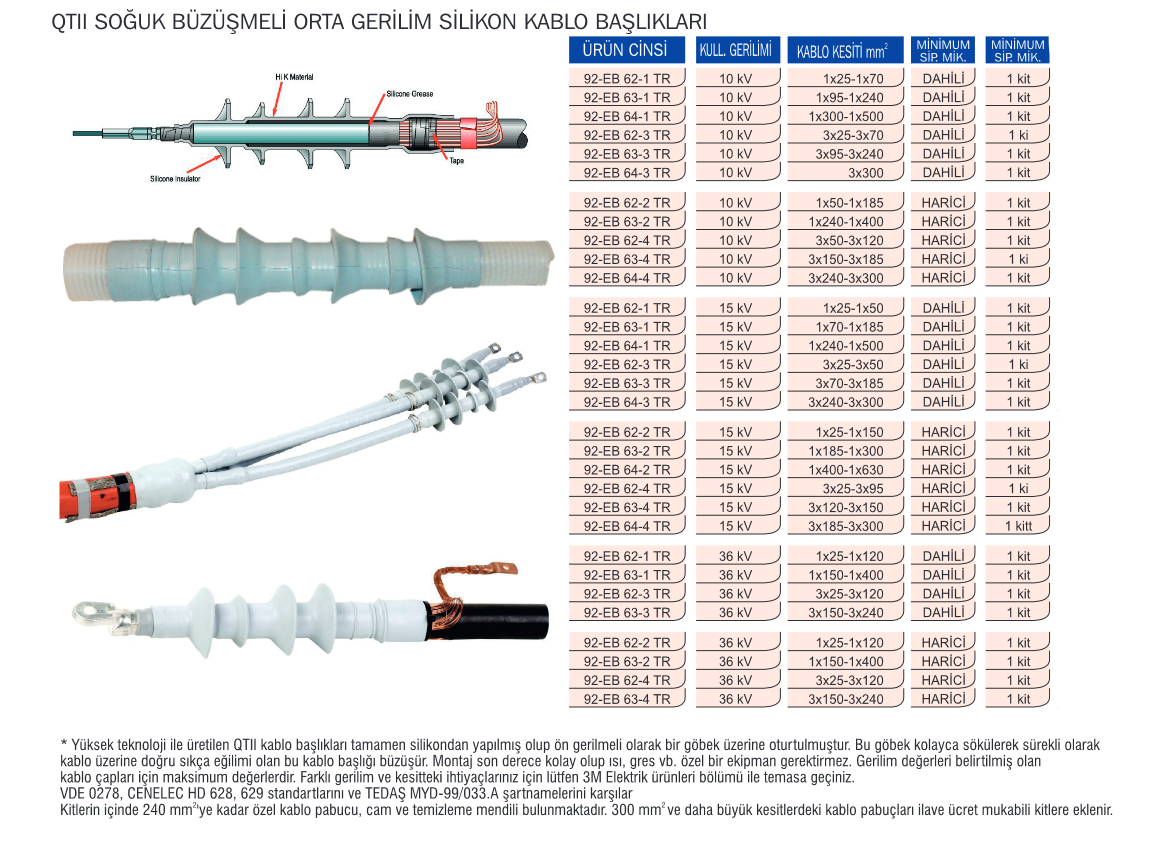 3M 1x185-1x300 15 kV SOĞUK BÜZÜŞMELİ ORTA GERİLİM SİLİKON KABLO BAŞLIĞI