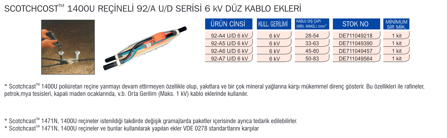 3M 92-A7 U/D 6 kV 50-83 MM SCOTCHCOST 1400U REÇİNELİ DÜZ KABLO EKİ